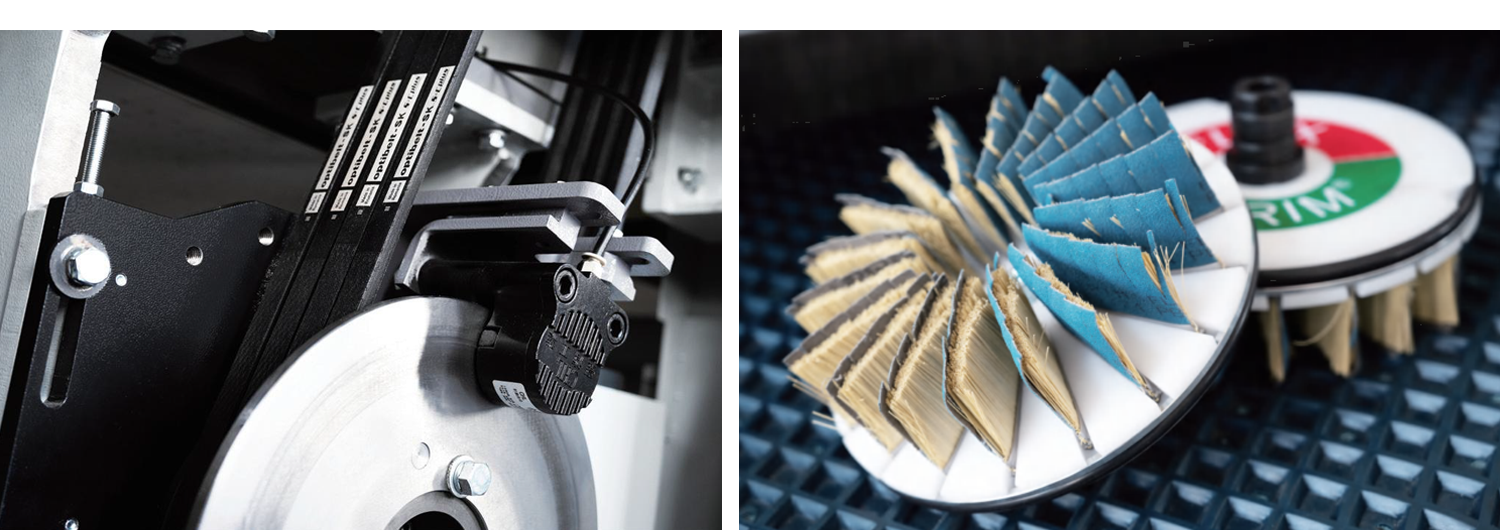 The disc, brush rollers use the European abrasive brand(Flex Trim)with more than 30 years to ensure high precision, strong wear resistance and easy replacement.